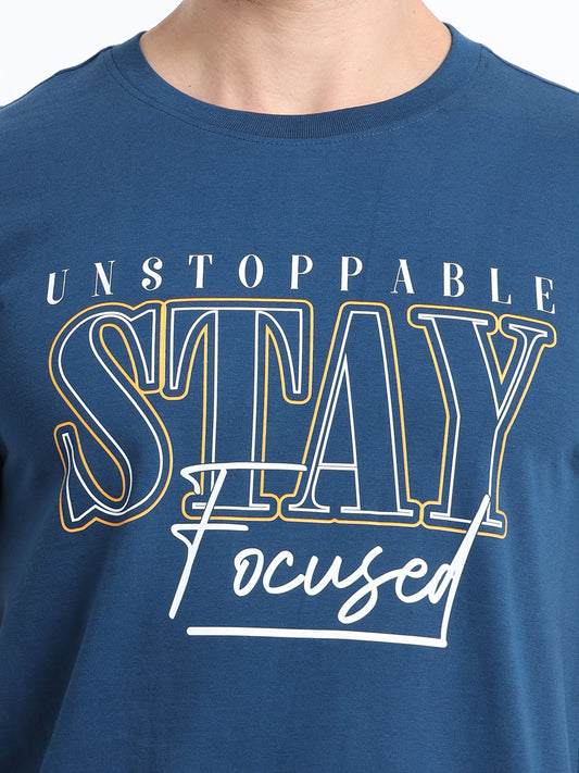 Unstoppable Printed Petrol Blue short sleeve Regular T-shirt