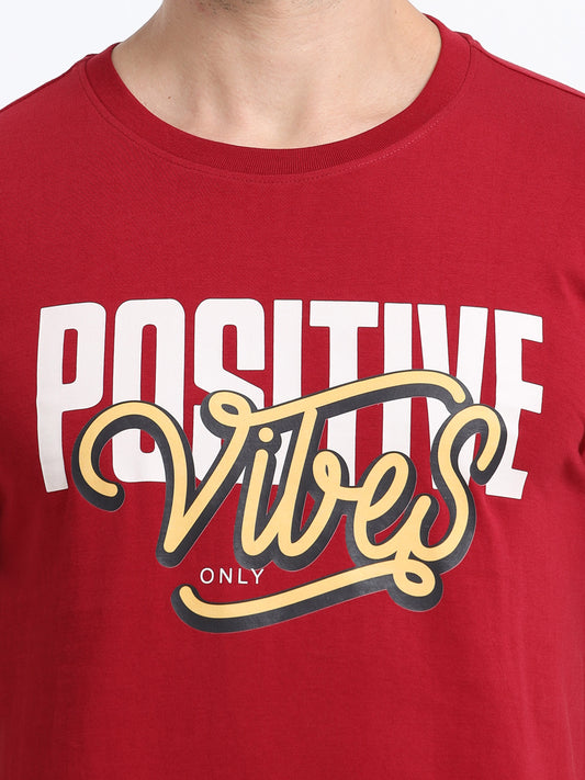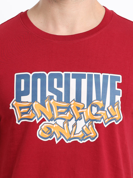 Positive Energy Only Printed Red short sleeve Regular T-shirt