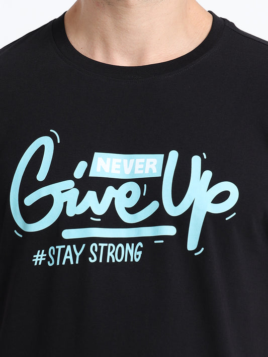Never Give Up Printed Black short sleeve Regular T-shirt