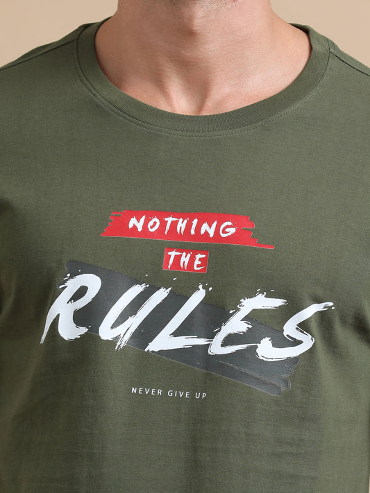 Nothing The Rules Printed Olive Green short sleeve Regular T-shirt