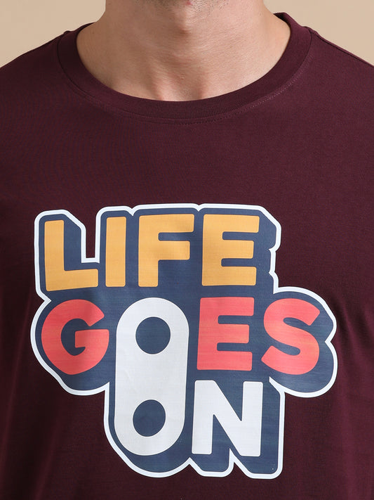 Life Goes On Printed Maroon short sleeve Regular T-shirt