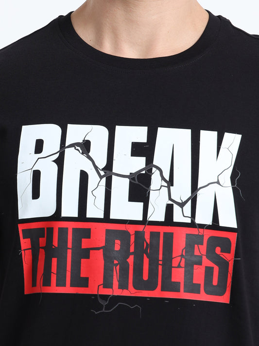 Break The Rules Printed Black short sleeve Regular T-shirt