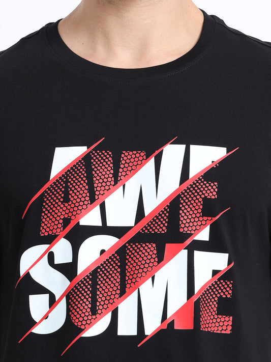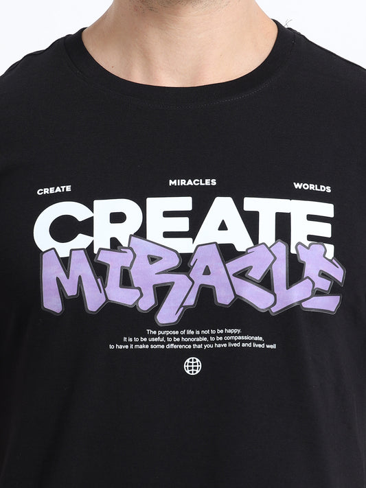 Create Miracle Printed Black short sleeve Regular T-shirt