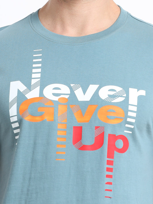 Never Give Up printed Light blue short sleeve Regular T-shirt