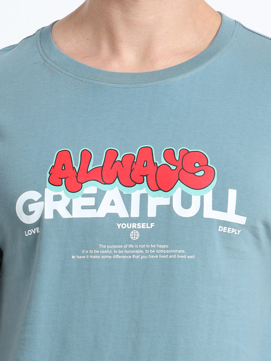 Always Greatfull printed Light blue short sleeve Regular T-shirt