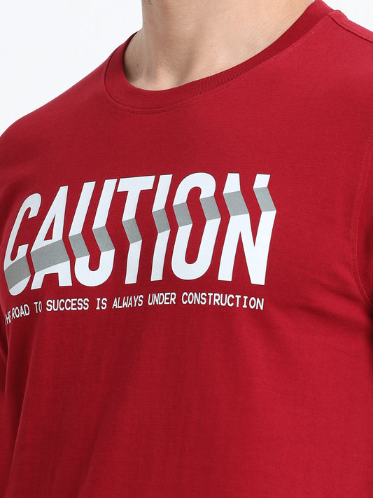 Life Goes On Printed Maroon short sleeve Regular T-shirt