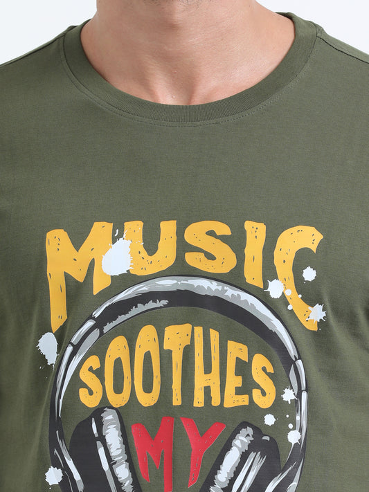 Music Soothes printed Olive Green short sleeve Regular T-shirt