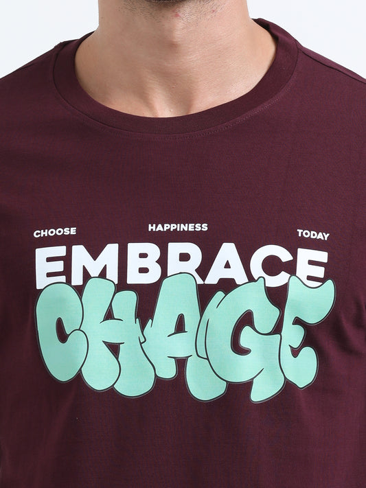 Embrace Change Printed Maroon short sleeve Regular T-shirt