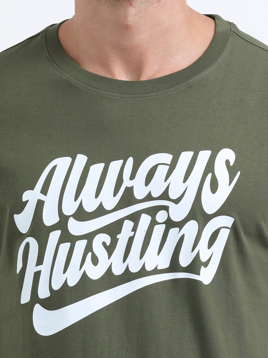 Always Hustling Olive Green short sleeve Printed T-shirt