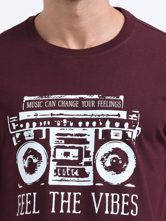 Feel the vibes Printed Maroon short sleeve Regular T-shirt
