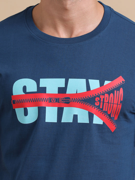 Stay Strong Printed Petrol Green short sleeve Regular T-shirt