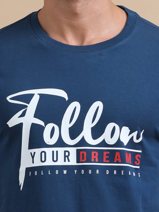 Follow your dreams printed Petrol Green short sleeve Regular T-shirt