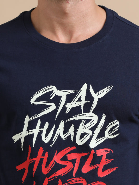 Stay Humble Hustle Hard printed Navy short sleeve regular fit T-shirt