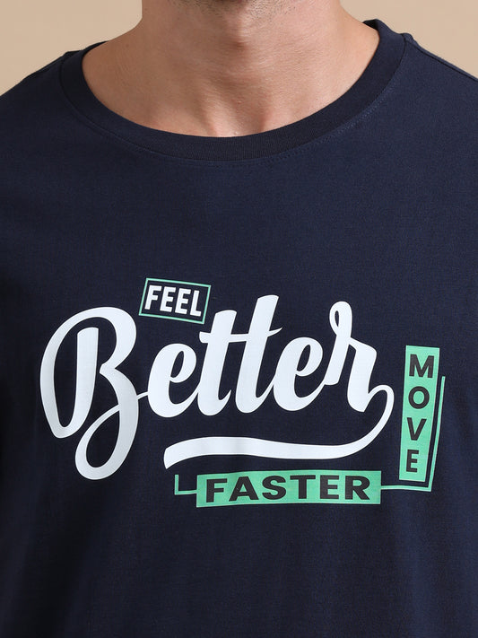 Feel better move faster printed Navy short sleeve regular fit T-shirt